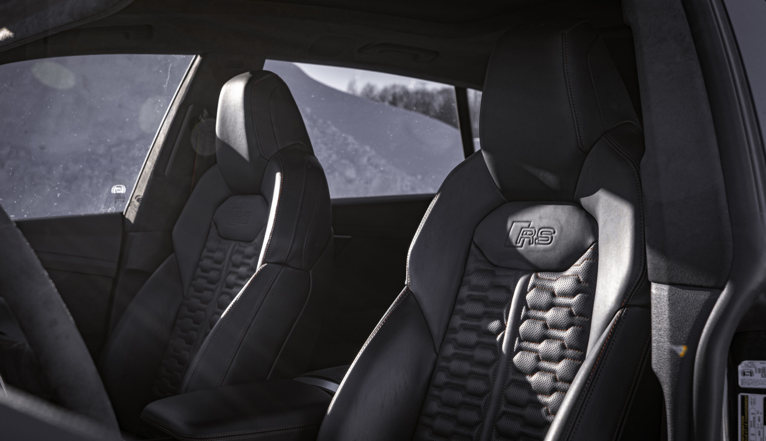 Arborant une configuration Noir sur Noir avec intérieur en cuir noir et surpiqûres rouges, ce RS Q8 affiche une allure à la fois élégante et résolument sportive.